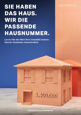 SIE HABEN DAS HAUS. WIR DIE PASSENDE HAUSNUMMER. Lernen Sie den Wert Ihrer Immobilie kennen. Diskret. Kostenlos. Unverbindlich. www.ihrehausnummer.de 02.08.17 14:16 VIS71_BG3.indb 43 VIS71_BG3.indb 43 02.08.17 14:16