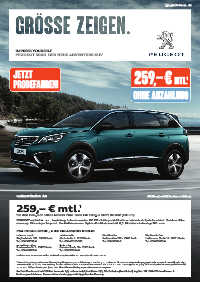 1 Monatliche Leasingrate bei einer Mietsonderzahlung von 0,– €, Fahrleistung 10.000 km p. a., Laufzeit 48 Monate. Ein Kilometerleasingangebot der PSA Bank Deutschland GmbH,